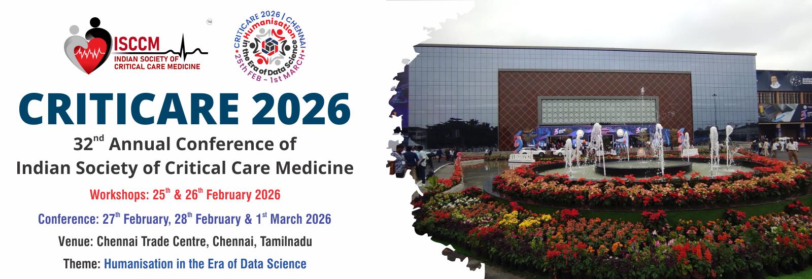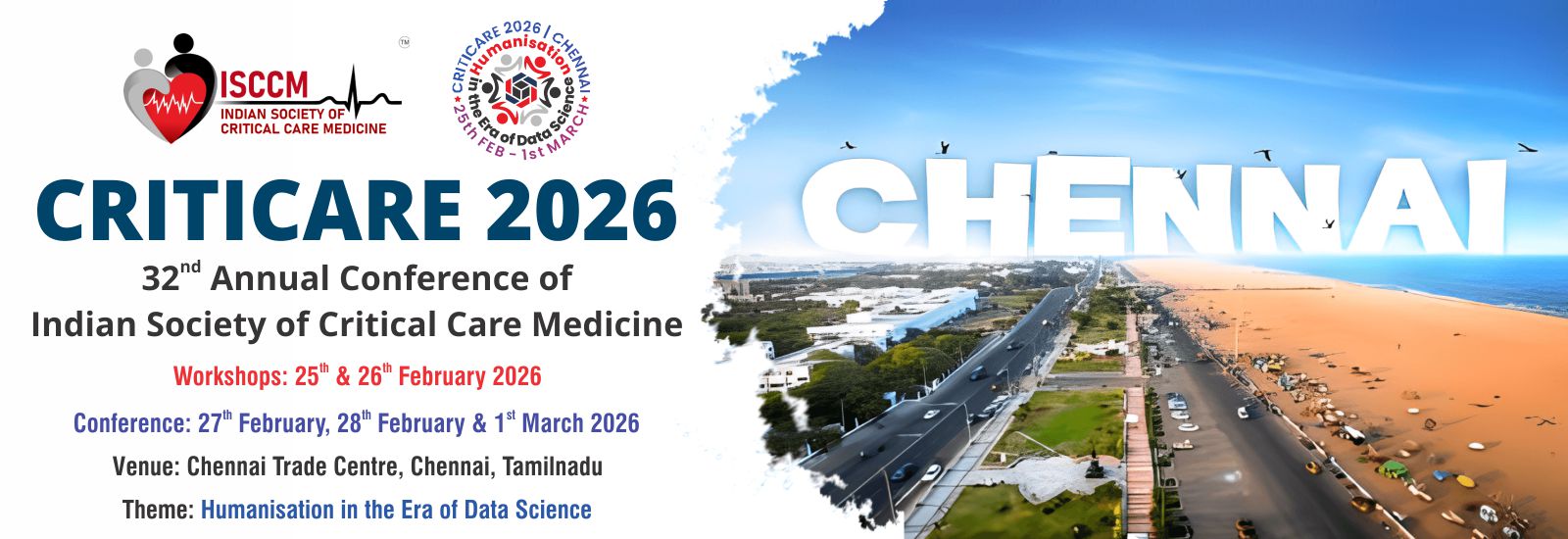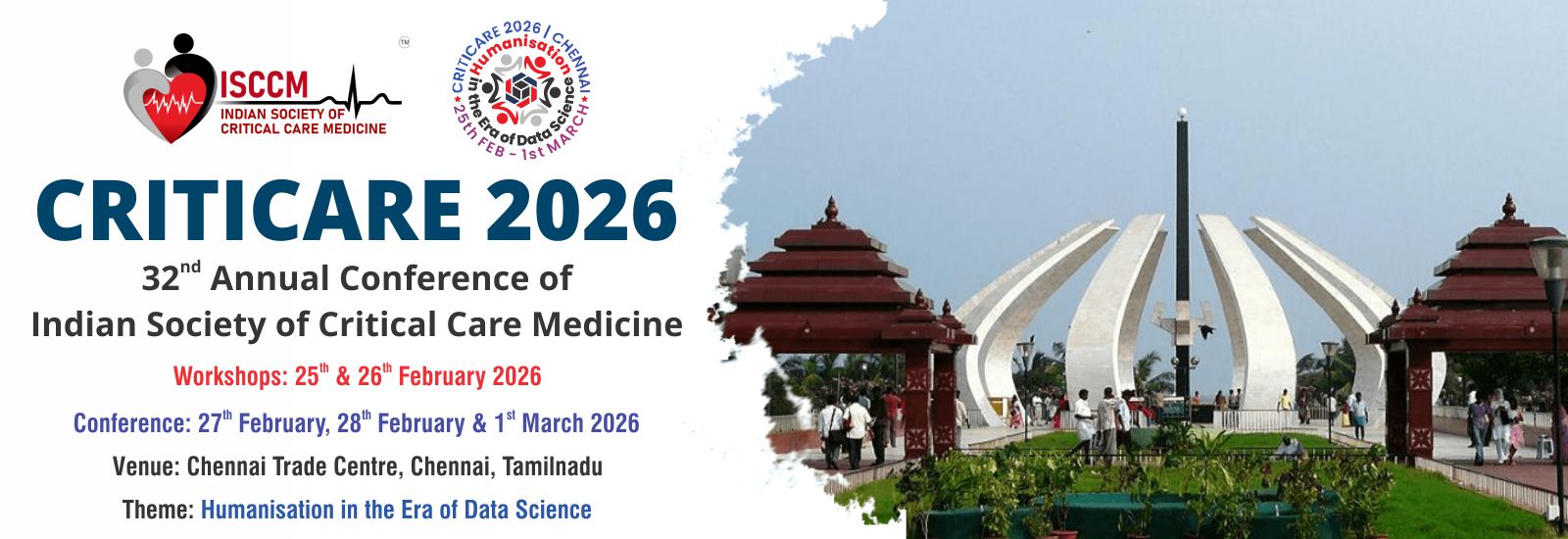 It is with immense pride and enthusiasm that we invite all of you to CRITICARE 2026, the marquee annual event of Indian Society of Critical Care Medicine (ISCCM) which is to be held from 25th February to 1st March 2026, in “The Cultural Heartbeat of South India”, Chennai, TamilNadu. The city provides a perfect blend of tradition, modernity, academics of highest order and world-class hospitality.